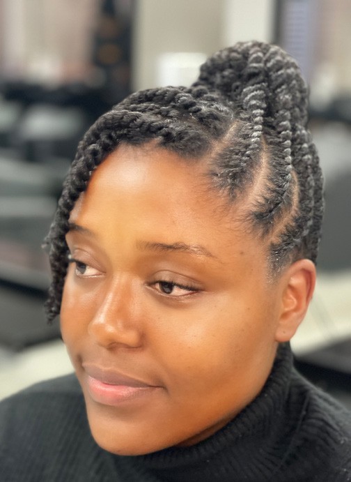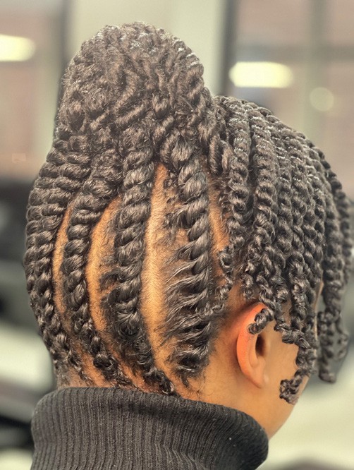 This style is also great for any time of year. Since it is made with three strands, it tends to last longer than the flat twist because it is more sturdy. However, people with thick hair or sensitive scalps should not try this look.
